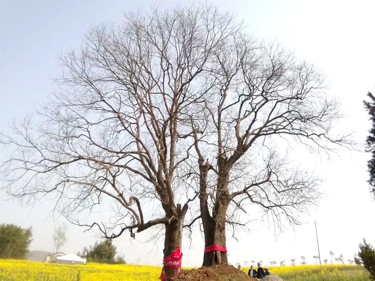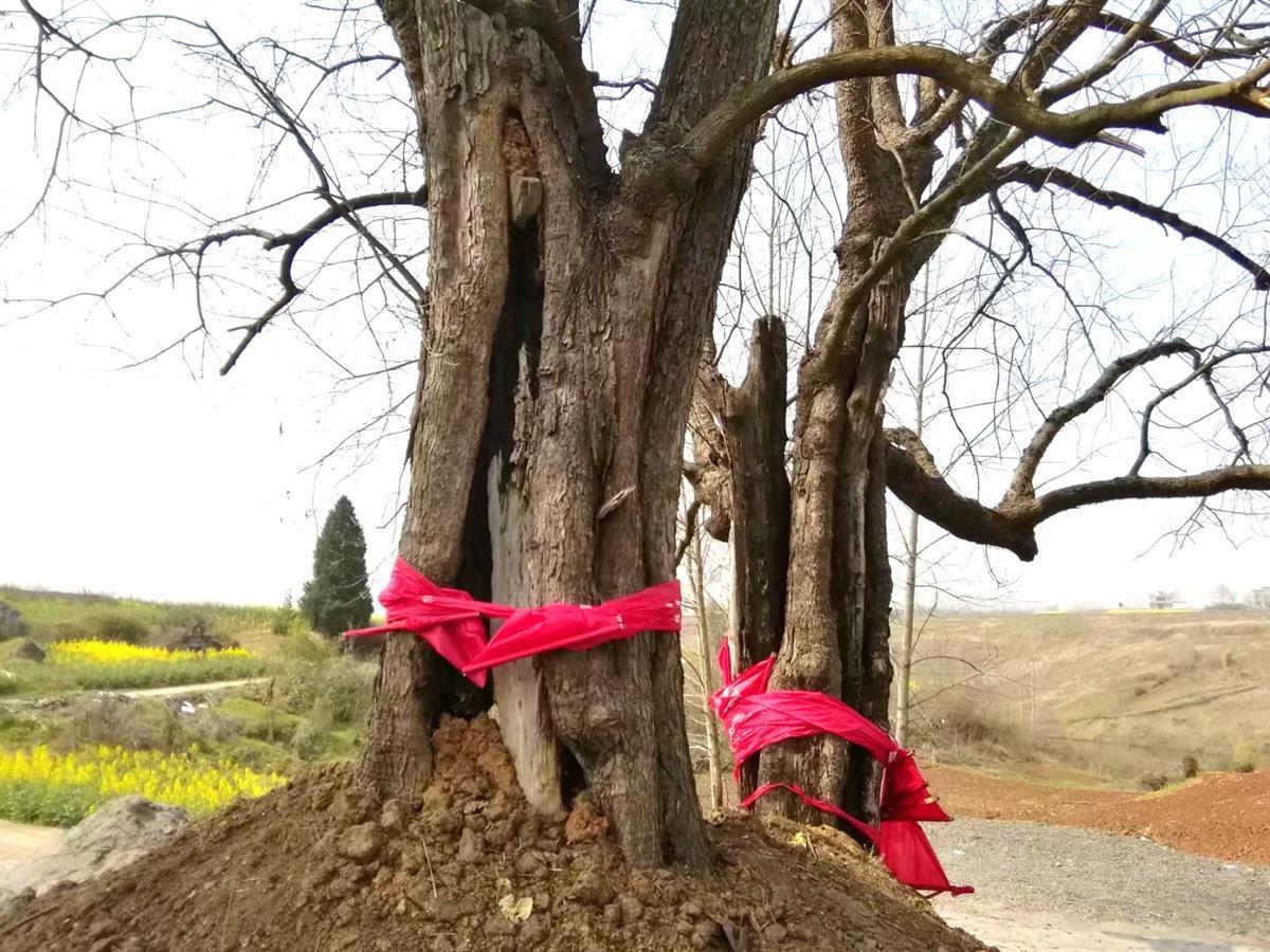 由于时间久远,黄连木树干内部大面积腐烂空心,长势逐渐衰弱,为传承文明,保护古树资源,该村多方筹措资金,清理周边杂草,做浆砌岸,填土,施肥,封堵空洞等多种复壮措施保护这对“夫妻树”。