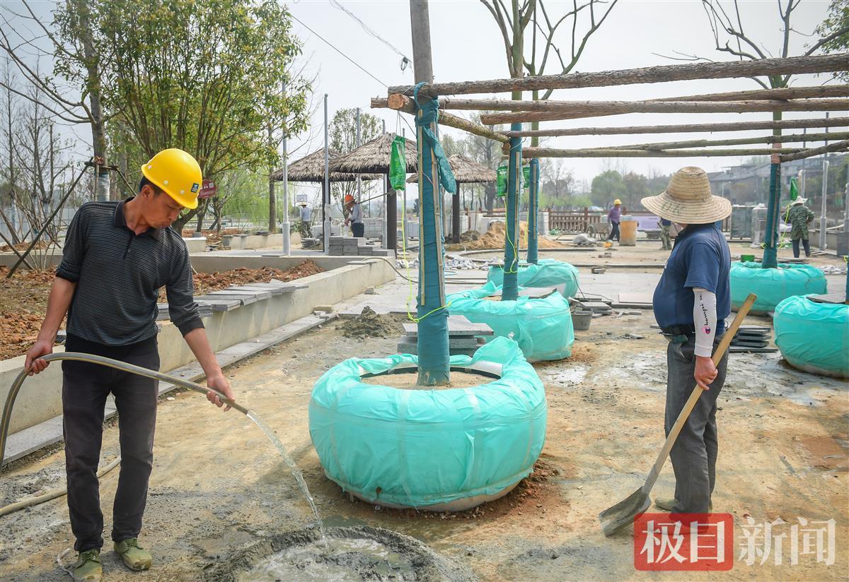 3月15日,武汉市江夏区“国企联村”农家畈田园综合体施工现场,有6棵特别的苗木,每棵苗木的树杈上,挂着一个容量大约有1000毫升的“点滴袋”,袋口向下,袋子下边的软胶管插进树干,“点滴袋”内的液体顺着导管输送至树干。
