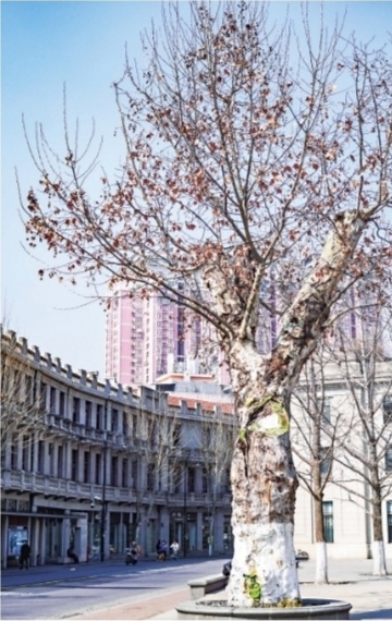 美术馆前被保留的80岁以上法桐。