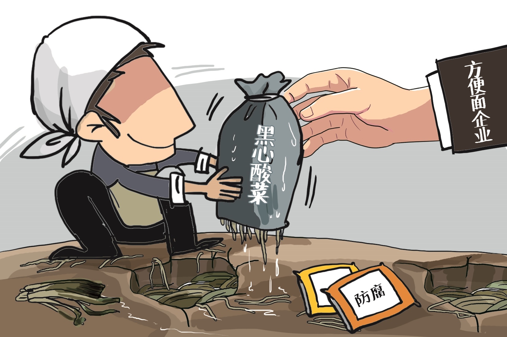 湖南省华容县一家蔬菜再加工企业,为多家知名企业代加工酸菜制品,也为一些方便面企业代加工老坛酸菜包,号称老坛工艺,足时发酵。然而,在这家企业的清洗车间,一袋袋酸菜被随意堆放在地上,经过机器清洗、切碎、拌料、包装、杀菌,就做成了老坛酸菜包。(据3月15日央视财经)
