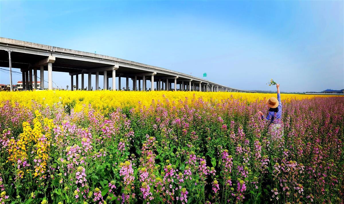 阳春三月,气温陡升,江夏百里沃野鲜花绽放。