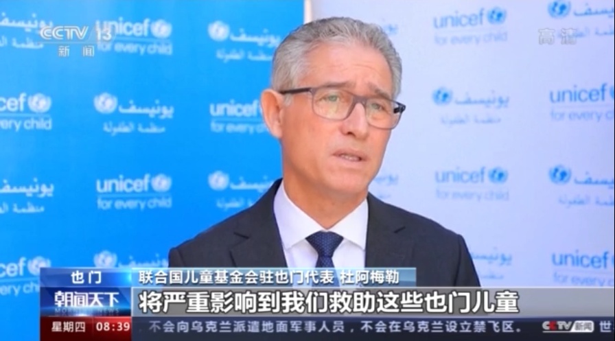 联合国儿童基金会驻也门代表 杜阿梅勒:乌克兰严峻的局势将严重影响到我们救助的这些也门儿童。市场上,燃料和小麦价格飙升,我们的工作成本会越来越高。小麦价格的升高,会影响到世界各地很多国家。