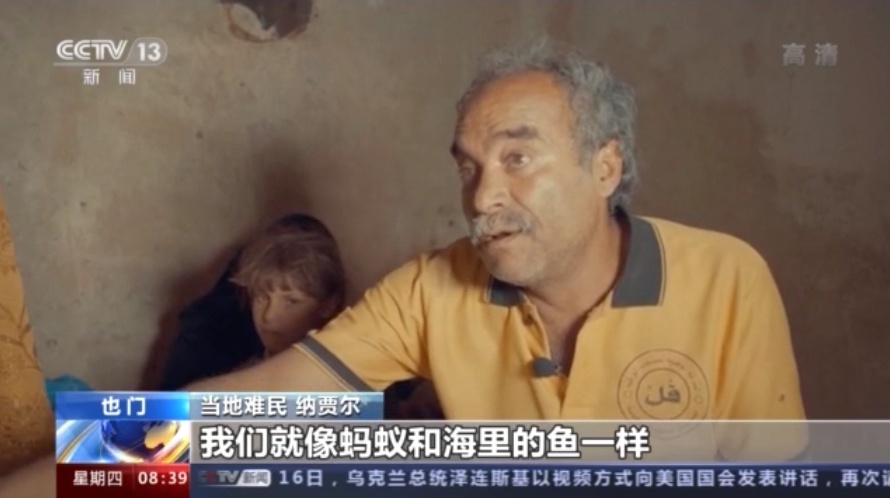 当地难民 纳贾尔:我们这一半人早上根本没东西吃,我们就像蚂蚁和海里的鱼一样,在自己寻找食物。
