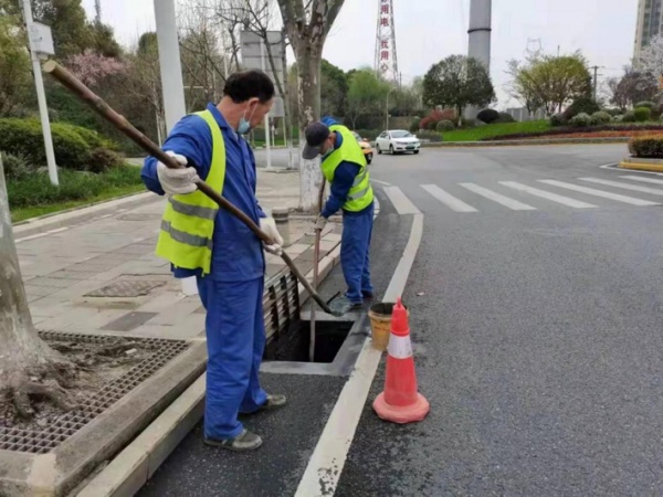 此外协调区水务局开展站区排水系统汛前清淤疏通工作,对雨水井、下水道逐个清掏,对易出现积水的白云路、和谐路等路段进行重点清理,并安排环卫人员及时清理雨水篦子上的杂物、落叶,确保下水管道畅通无阻。