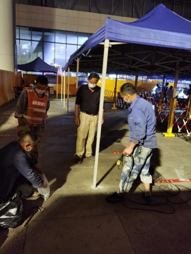“我们对东、西出站口核酸检测点开展安全生产隐患排查,重点检查检测点内帐篷、水码等设施的防风措施及用电线路的防雨措施,及时采取水码加水、帐篷固定等方式,为旅客及医护人员创造安全的检测环境。”工作人员介绍,站区办安排了应急队伍50人,储备防汛物资警示牌30块、沙袋80袋、警示绳20卷、水泵2台、铁锹50把、消防水带10卷等。
