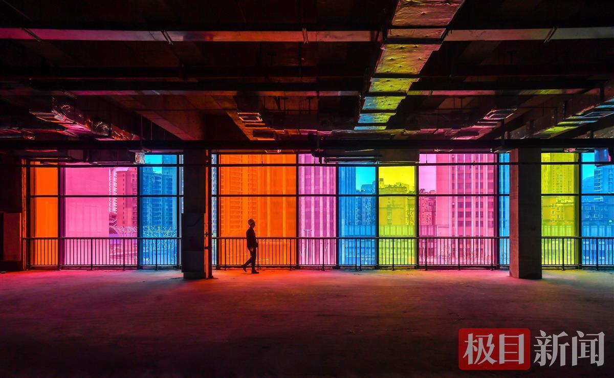 在武汉市江汉区新华路一侧,留心的市民会注意到,一栋由主楼和裙楼组成的主体建筑拥抱耸立,其中裙楼一侧外立面装饰的彩色玻璃幕墙格外吸睛,步入室内,俨如“彩虹走廊”。