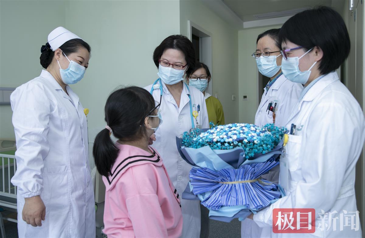 因为红斑狼疮发作入院,一家人愁云惨淡。在医护的关心下,10岁女孩逐渐康复,笑容也回到脸上。3月16日,女孩入院复查,带来一束自己折的满天星花束,将幸运和祝福送给医护。“长大我也要当医生,救治更多小朋友。”她说。