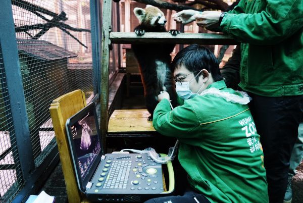 长江日报大武汉客户端3月18日讯(记者郭可滢 通讯员邓丽玲)刚做完基础体检的小熊猫,又站上了B超仪器操作台。17日,武汉动物园为2只小熊猫——美美和糊米酒,做腹部B超。
