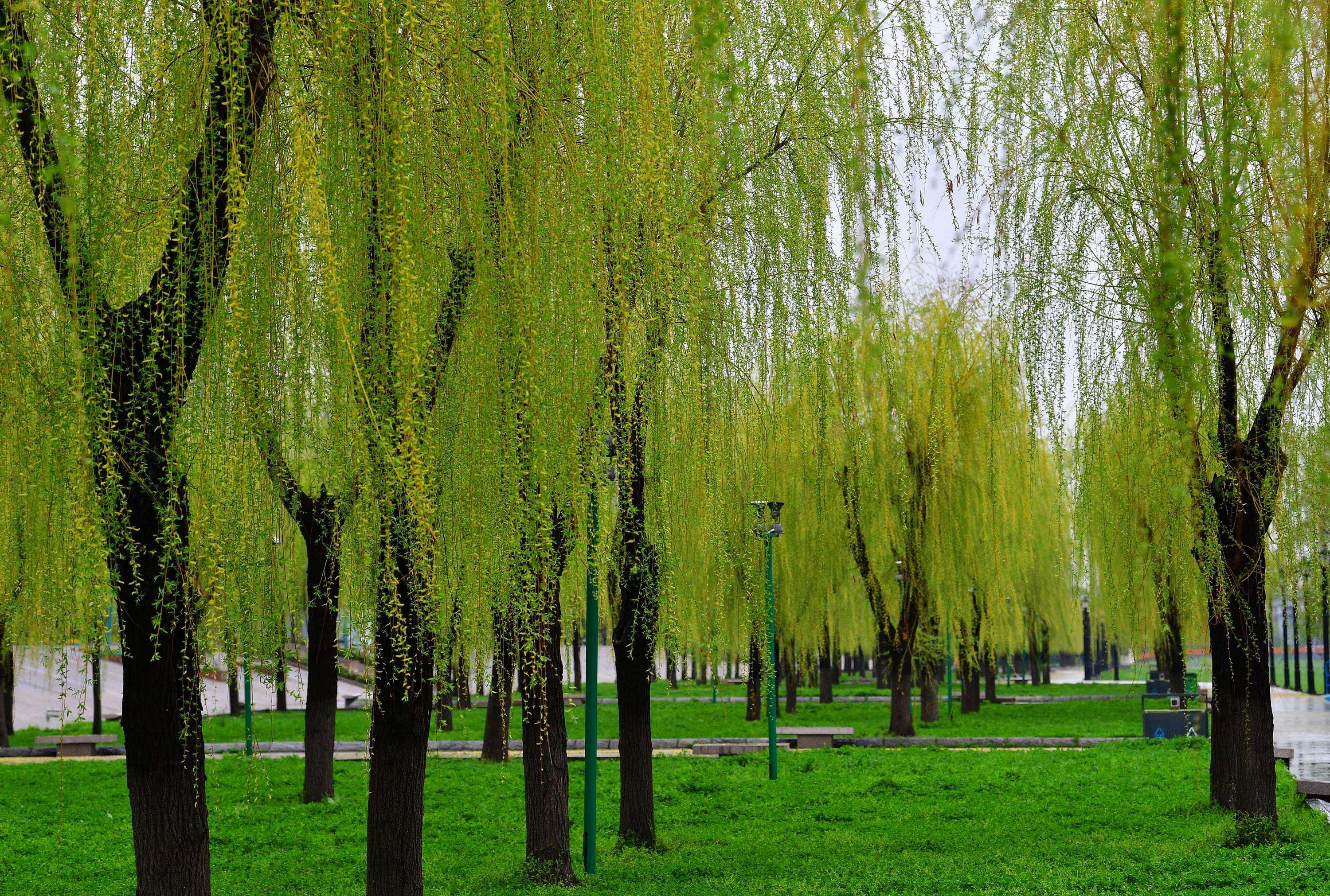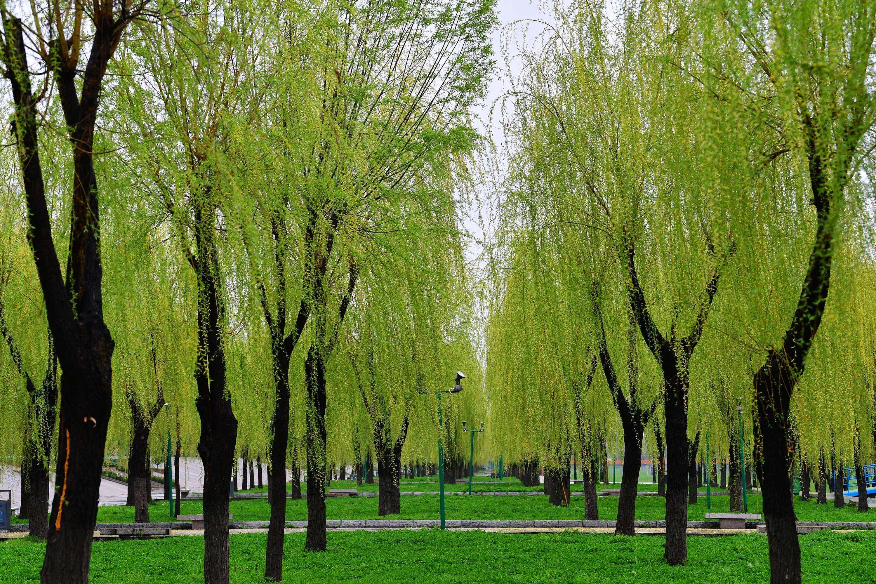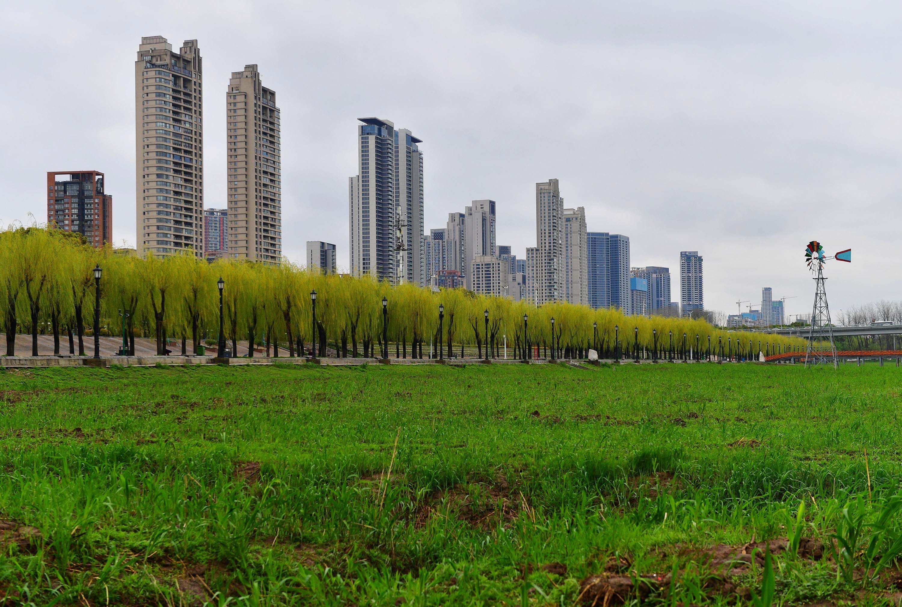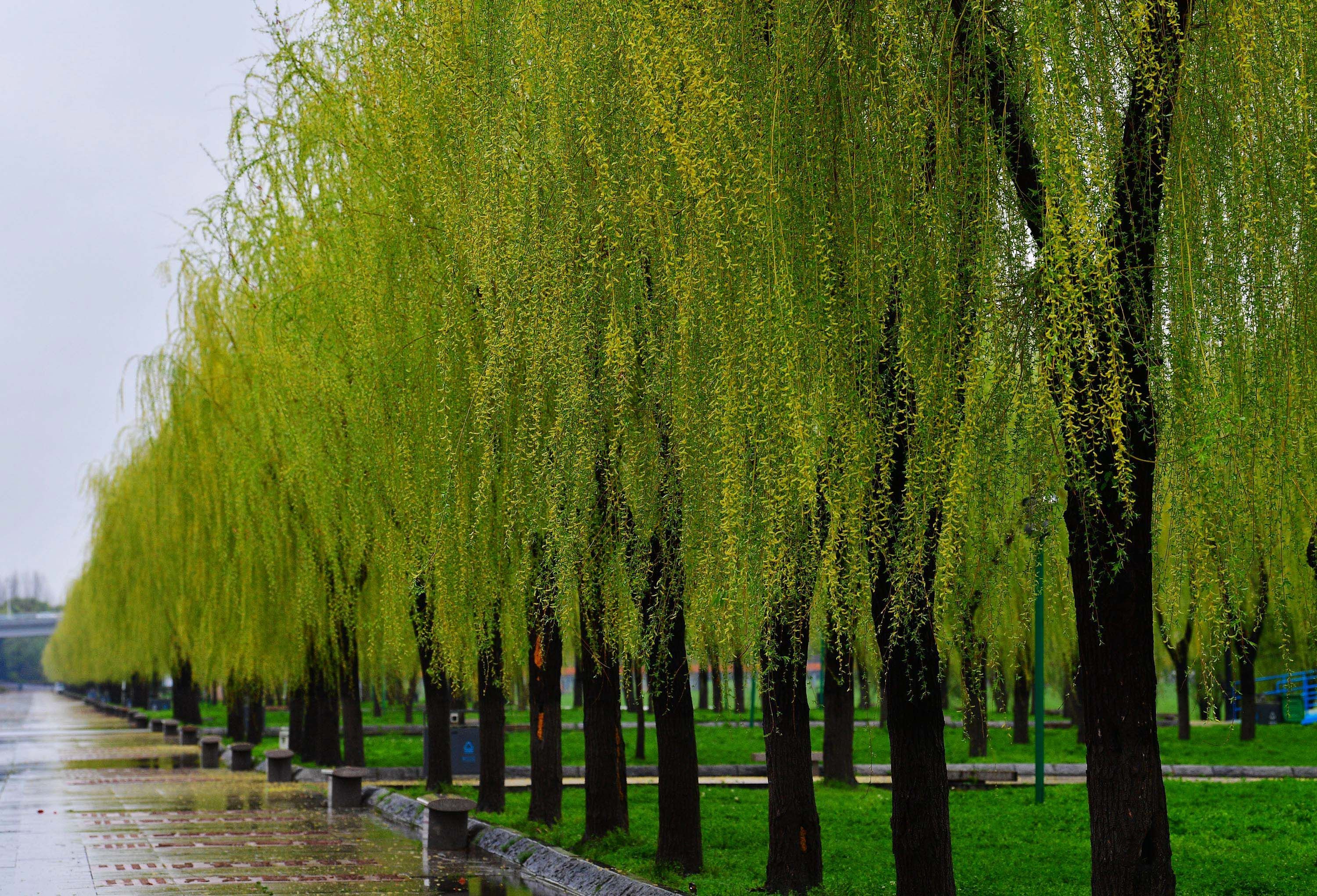 3月18日,汉口江滩25米亲水平台上,一行行柳树经过大雨的洗刷和浇灌后显得愈发郁郁葱葱。无数根柔软的枝条低垂下来,随风摇曳。枝条上繁多的花序和嫩叶给树冠罩上了一层黄绿相融、如烟似雾的光泽,成为江滩春日最盛大的风景。