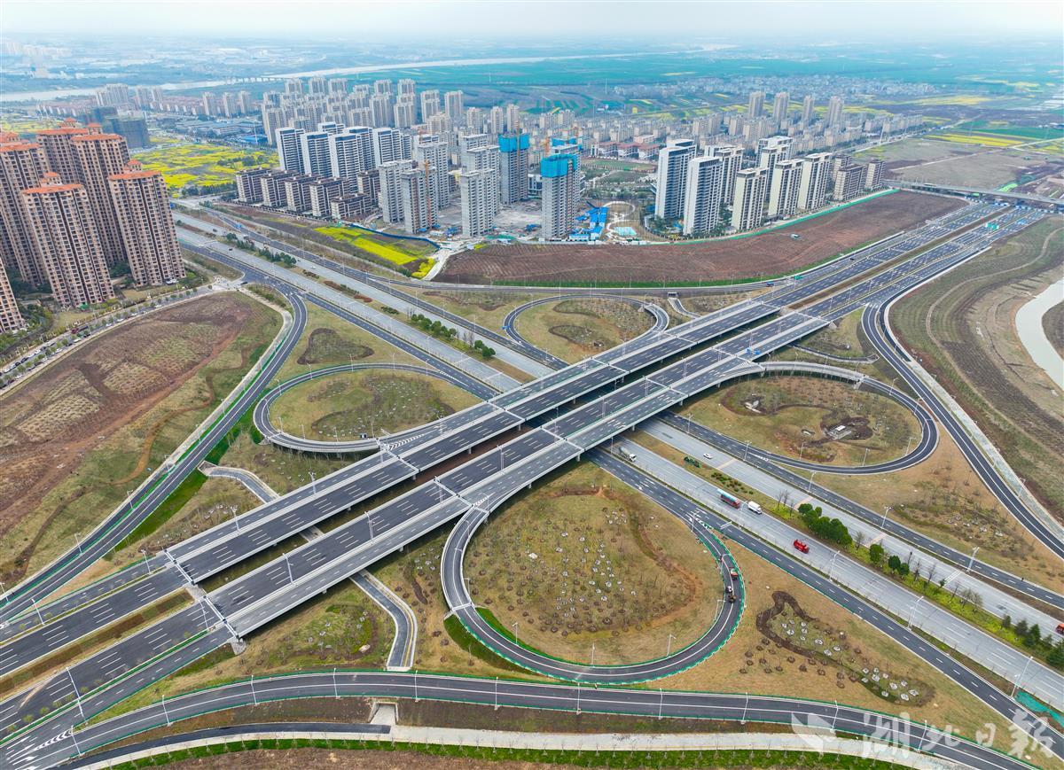 3月17日,襄阳市环线提速改造项目东津全互通立交桥在做绿化施工。该桥是襄阳城区首座互通式立交桥,城市快速路东西轴线与南北轴线在此交会互通,是市区“半小时交通圈”的核心节点之一,对于缓解交通压力、助推城市发展意义重大。 (湖北日报全媒记者田悦 通讯员陈鑫 谢勇 摄)