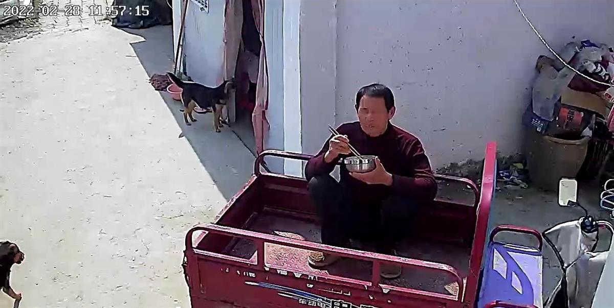 3月18日,截图中老人的女儿刘同学告诉极目新闻记者,她今年23岁,在合肥一所高校就读,如今正在准备考研。她父亲已经年近七旬,在安徽阜阳老家靠种地维持生计,父亲几年前曾患过脑梗,后来经常出现头痛、呕吐等症状。她和妹妹都在外地读大学,家里只有父母两位老人,她总是放心不下家里。寒假结束她返校前,就在大门口装了一个摄像头,可以时常关注家里的情况。