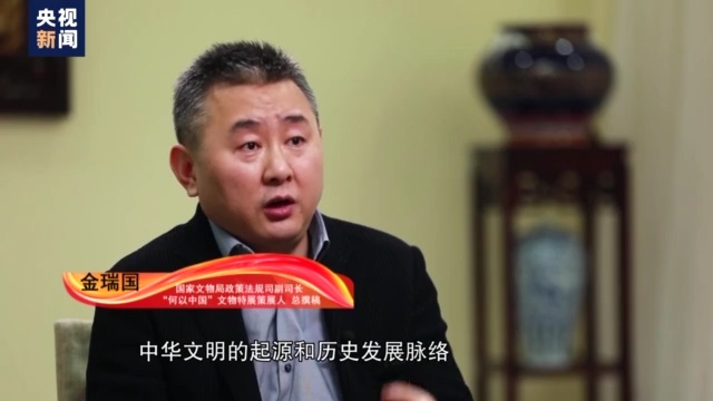 国家文物局政策法规司副司长 “何以中国”文物特展策展人 总撰稿 金瑞国:通过它们想讲清楚中华文明的起源和历史发展脉络,中华文明取得的灿烂成就,中华文明对人类文明的重大贡献,也去用这个展览来展现中华文明,中华传统文化中的积极因子,比如说以人为本、天人合一、道法自然、自强不息、和而不同、天下为公。