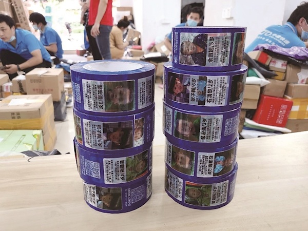 中通快递广州永福网点员工潘先生告诉记者,他第一次接触“寻亲胶带”后,就觉得很有意义,“希望将这些失踪儿童的信息传播得更远,给寻找他们的家庭提供更多线索。”