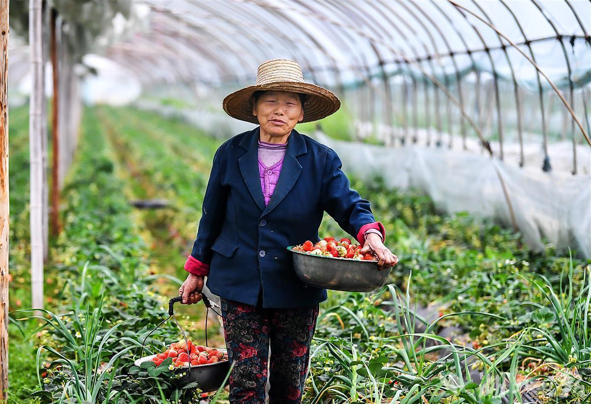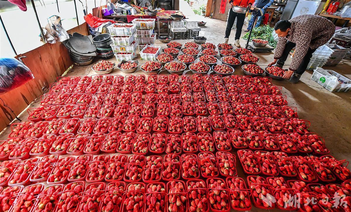 据了解,今春武汉市草莓种植面积近4万亩,主要集中在蔡甸、东西湖、黄陂、江夏、新洲等新城区。(湖北日报全媒记者 朱熙勇 摄)