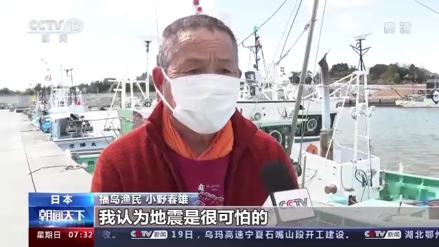 福岛渔民 小野春雄:我认为地震是很可怕的,而让我们渔民更害怕的是海啸。这次的地震和11年前的东日本大地震一样都发生在3月份,虽然这次地震和11年前相比震感更强,但是没有引发大海啸,我真的觉得很庆幸。