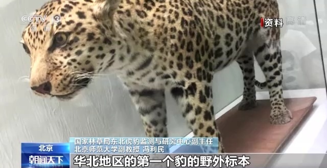 国家林草局东北虎豹监测与研究中心副主任 北京师范大学副教授 冯利民:在历史上,华北地区山地森林生态系统它是野生豹的重要分布区,甚至在北京及其周围,也是野生豹的重要分布区。一百多年前,在1867年的时候,在北京的西山采集到华北地区的第一个豹的野外标本。