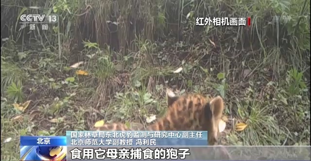 国家林草局东北虎豹监测与研究中心副主任 北京师范大学副教授 冯利民:我们这一次拍摄这样的场景,正好完全记录到了幼豹从吃奶到吃肉这个过程的过渡的阶段,这样的视频对于野生豹生活中重要阶段的野外记录,以前非常的少,在中国也是首次。
