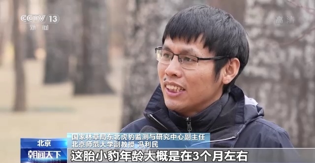 国家林草局东北虎豹监测与研究中心副主任 北京师范大学副教授 冯利民:我们可以推测,这胎小豹年龄大概是在3个月左右,因为对于野生豹来说,幼豹出生的头2到3个月,一般它是活动能力不强,母豹会把它留在一个非常安全的隐蔽场所,等到2个月之后幼豹足够强壮了,母豹会把它带出来,移动甚至会把它带到捕猎地点。
