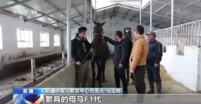 新疆伊犁马繁育中心负责人 马玉辉:这是我们伊犁马繁育中心繁育的母马F1代,这个是我们当地的一个土马,首先(繁育后)的体高要比它高很多,这个的话它的价格是8到10万元,这个土马市场行情比较差的就不到1万块钱。