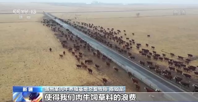 博州某肉牛养殖基地总畜牧师 陈如龙:通过精准系统这些手段的植入以后,使得我们肉牛饲草料的浪费减少了30%甚至40%,准确率提高到由原来的60%现在提高到了90%甚至95%,养这样的一头牛相当于养普通牛的利润是5头。