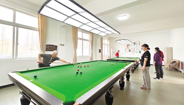 77岁的江汉油田退休职工姚金华正在打台球。“我们这里有三个小区,过去台球室破旧,台球桌老化。现在三个小区合并为广北社区,台球室装修一新,还有志愿者烧开水、打扫卫生,条件好多了。”他高兴地告诉记者,社区“居家养老做得好,老年生活乐开花”。