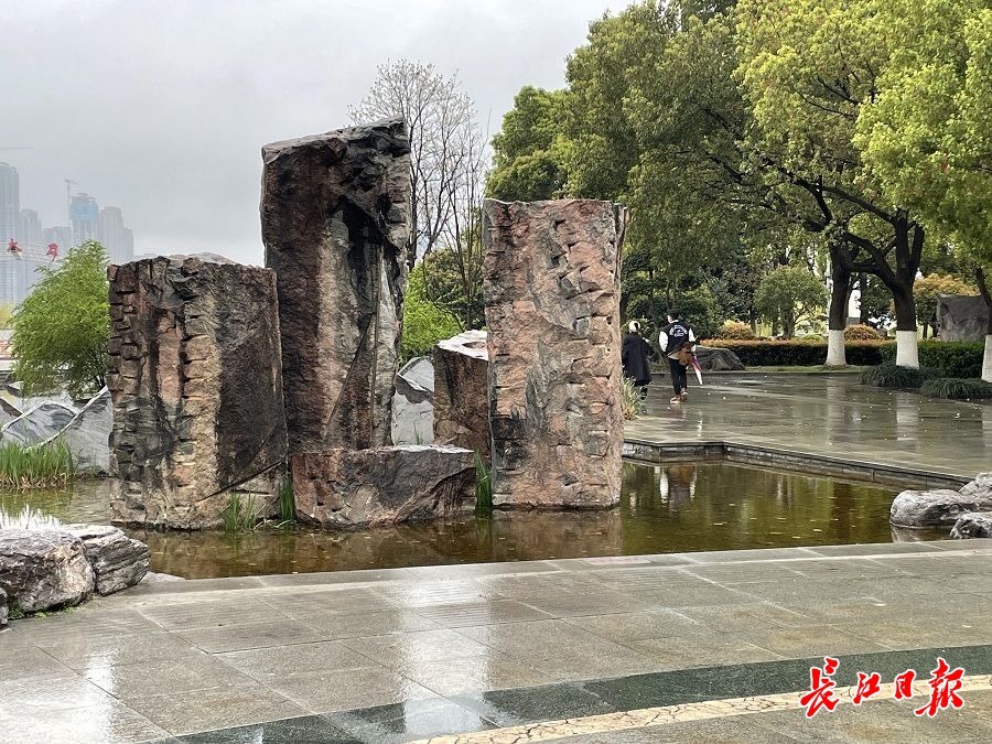 3月20日下午,记者来到汉口江滩三峡石广场,当天下着小雨,游玩市民不多。