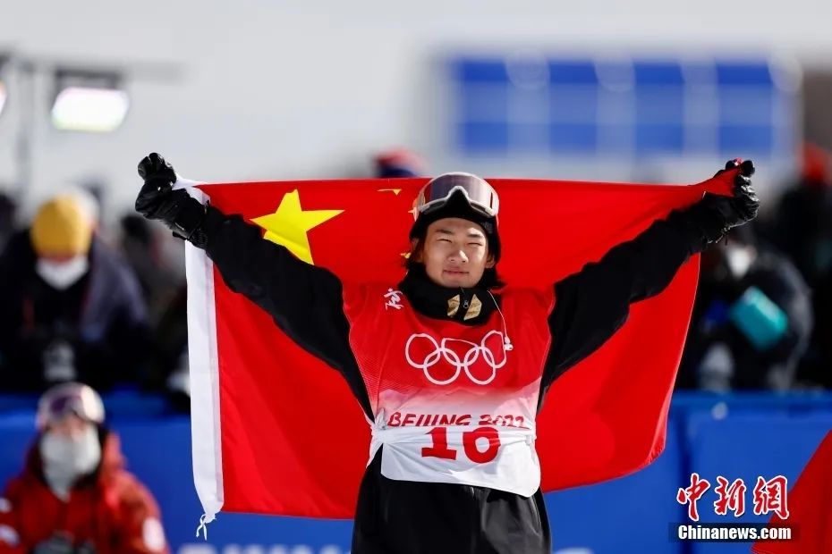 北京冬奥会单板滑雪男子大跳台,苏翊鸣获得冠军。 中新社记者 毛建军 摄