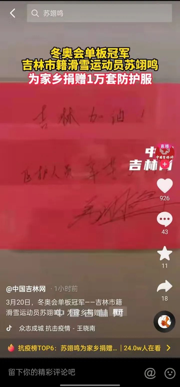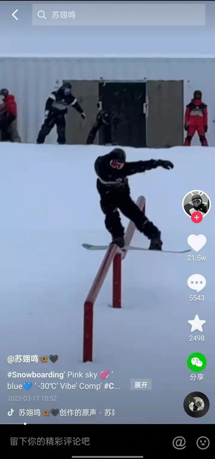 图片来源:苏翊鸣短视频平台作品截图。
