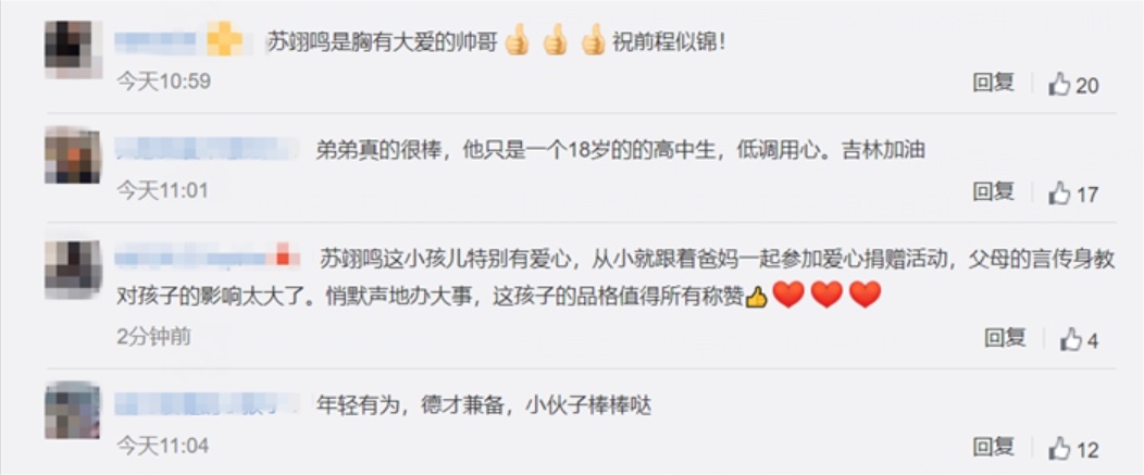 吉林市慈善总会也向苏翊鸣
