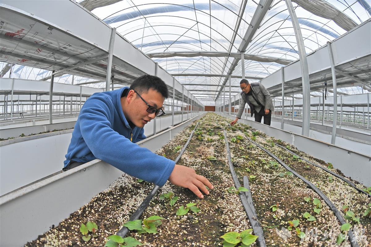 当阳打造鱼腥草全产业链3月17日,当阳市两河镇群丰村鱼腥草智慧工厂技术人员正在查看栽培平台上鱼腥草苗的幼苗。