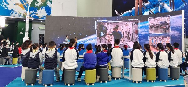 “天宫课堂”第二课的地面主场——中国科技馆现场。记者柯立 摄