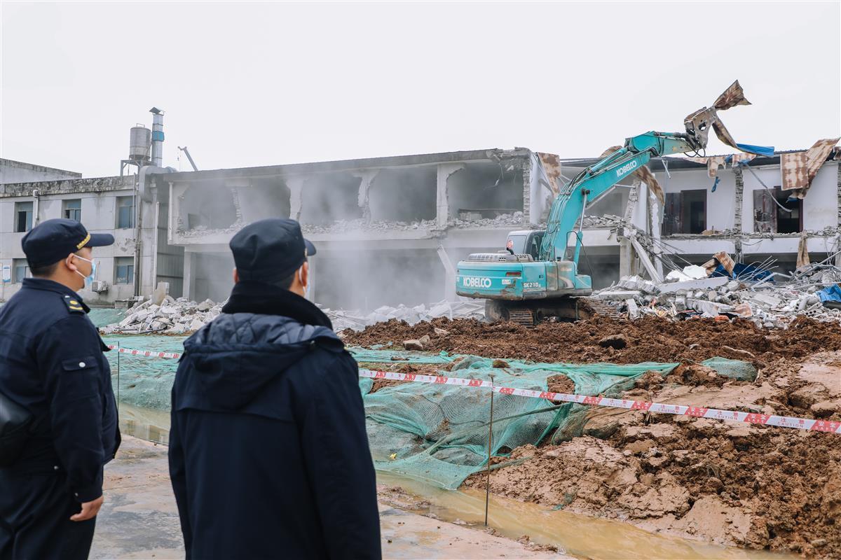 据了解,该违建点位,前后共有9处,在九峰街19号线车辆段项目建设范围内,是一个水泥搅拌站,设有办公楼、宿舍楼和食堂等,二十多年前建设,属于历史遗留违建。随着地铁19号线车辆段项目建设推进,违法建设阻挡了项目建设,需要对该批违建进行拆除。