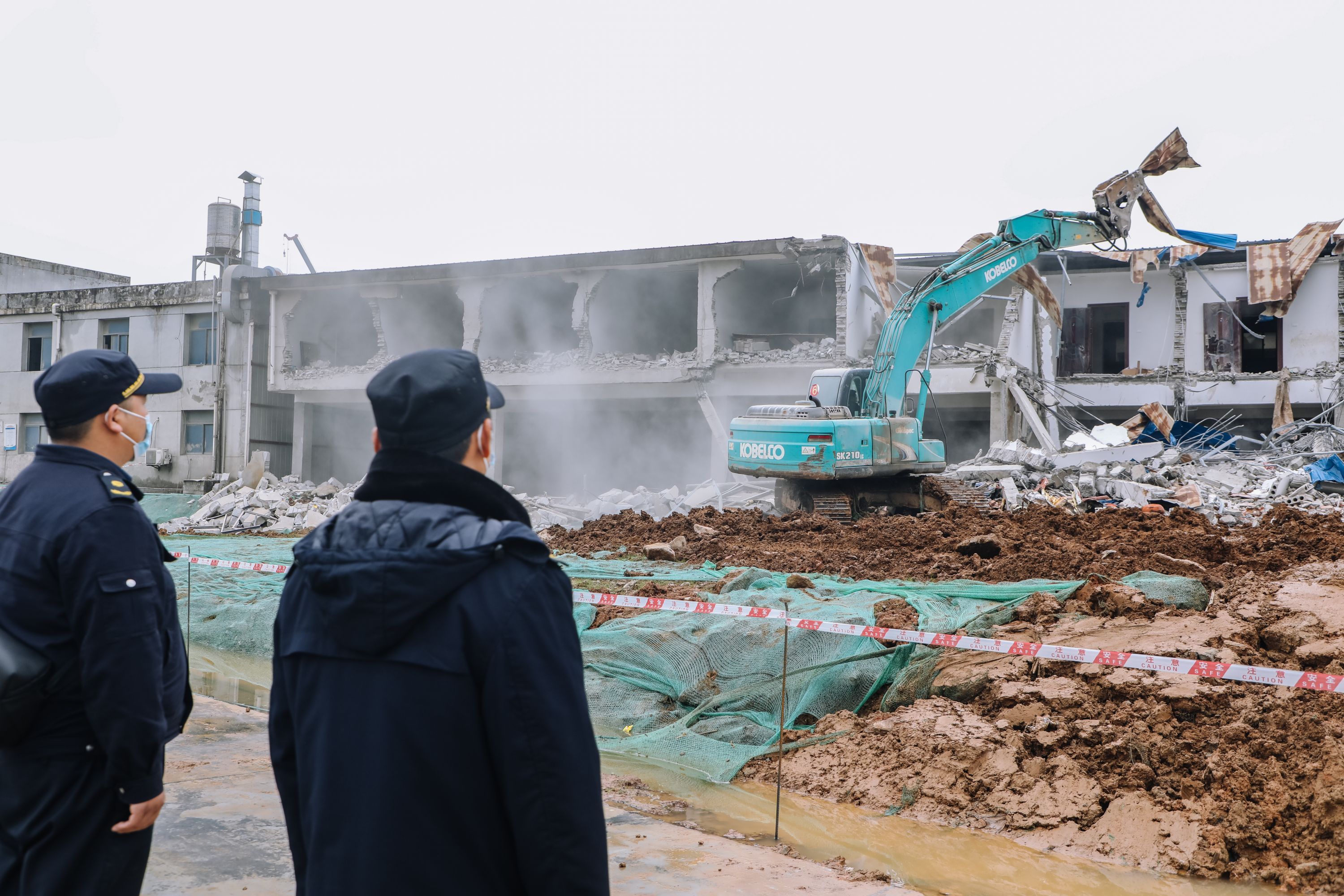 据介绍,为确保拆除行动有序进行,城管队员在现场周边打围,同时工作人员拉好警戒线,并用手持喇叭循环提示无关人员切勿靠近,注意安全。