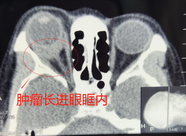 影像学检查发现肿瘤已侵入眼眶。 通讯员余瑛 摄