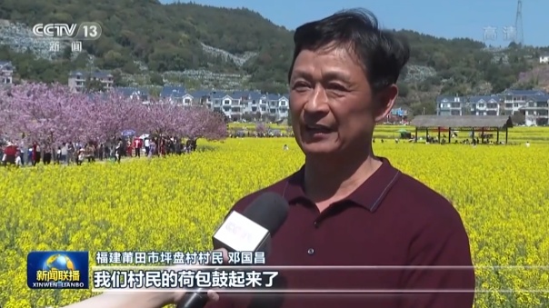 福建莆田市坪盘村村民 邓国昌:我们村民的荷包鼓起来了,居住环境提升了,幸福指数也提高了。印证了习近平总书记所说的那句话,绿水青山就是金山银山。