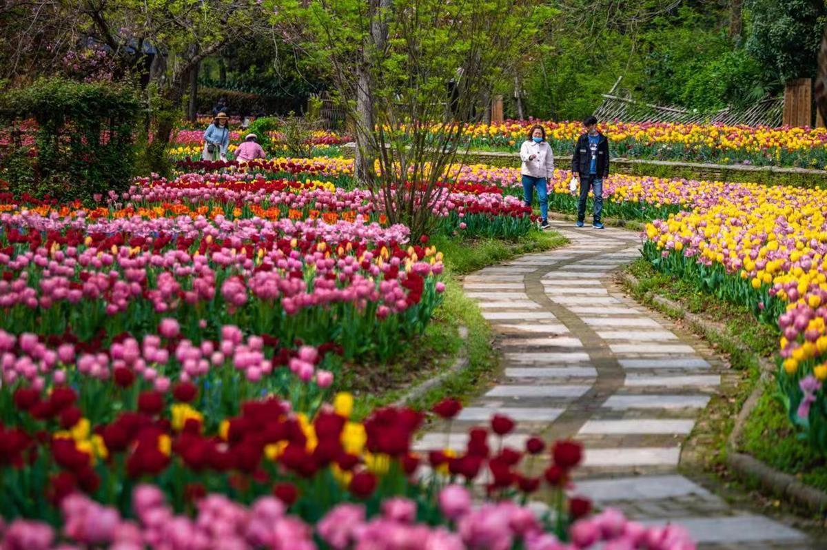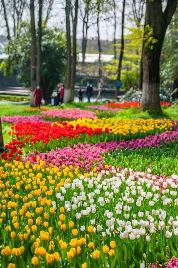 此刻的武汉植物园,目之所及,尽是春日美好:60万株郁金香描绘的花径、花溪和花田更为明丽,洋水仙、风信子和葡萄风信子等配角依旧颜值在线,恰似色彩与梦幻交织的浪漫花园。