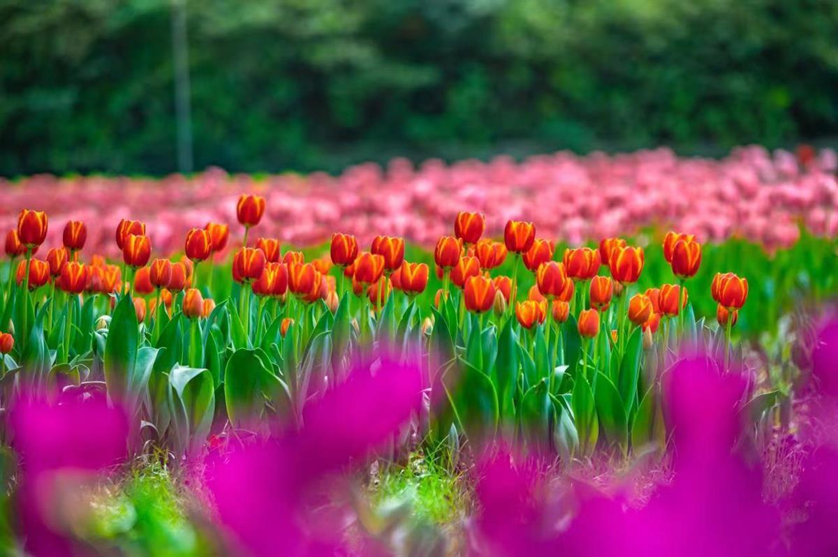 目前中晚期郁金香全部开放,正是最佳观赏期,预计花期将持续至4月上旬。激情撞色的花海铺满视野,令你心生喜悦,来吧,和郁金香撞个满怀!