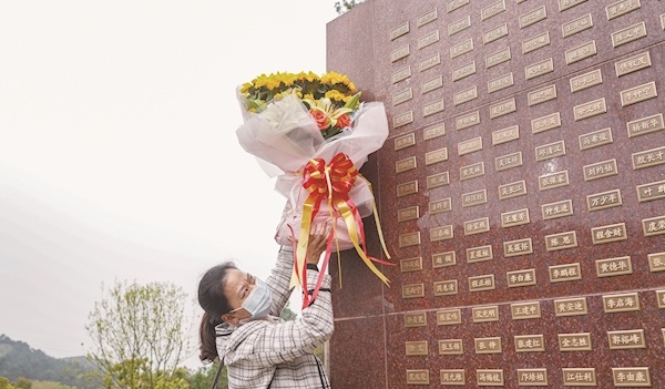 3月26日,是武汉市第16个遗体器官捐献者纪念日。早晨7时,46岁的邹美芳和丈夫带着女儿欧阳忻怡生前最爱的向日葵和苹果,从江夏来到石门峰纪念公园遗体器官捐献者纪念碑前,在纪念墙上找到了女儿的名字。“快看,女儿在这里!”她一边挥手向身后的丈夫示意,一边踮着脚将女儿最喜欢的向日葵花束,捧到最靠近女儿名字的地方(图一),转过头时,泪水悄然滑落。