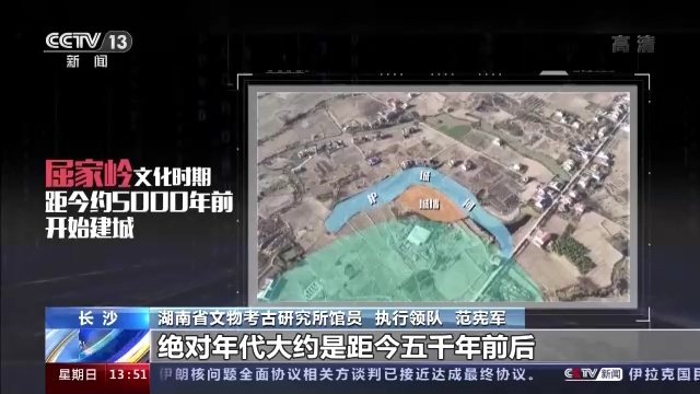湖南省文物考古研究所馆员 执行领队 范宪军:这个早期的环壕废弃以后,在外面挖更大的环壕了,开始建城,这个时期发生在屈家岭文化时期,绝对年代大约是距今5000年前后。那么到了石家河文化时期,开始向外围扩大,然后挖了第二圈环壕和第三圈环壕。