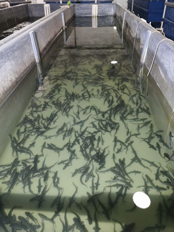 2009年全人工繁殖的中华鲟子二代个体,长到12岁了;在研究人员的翘首期盼下,终于开始性成熟。得益于良好的水温调控、科学的营养供给与精心的日常管理,2021年10月,水工程生态研究所培育的子一代与子二代中华鲟亲鱼产出了高质量的卵子和精子,受精率达到77.9%,孵化率达到89.5%,以上指标达到或超过了全国中华鲟全人工繁殖工作以来的最好水平。最终,孵出子2.5代中华鲟仔鱼11万尾,目前存活约6万尾,体长20-40厘米,体重最大超过280克。