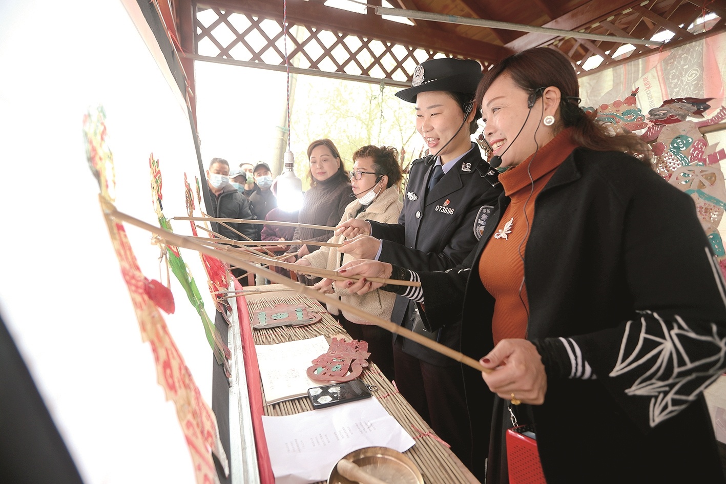 传承人杜珍元是表演者之一,已经从事皮影戏表演30年。她告诉极目新闻记者,传统文化助力油菜花节,开展禁毒宣传也是对这项艺术形式的一种发展,也让民间艺术担起更多的社会责任。