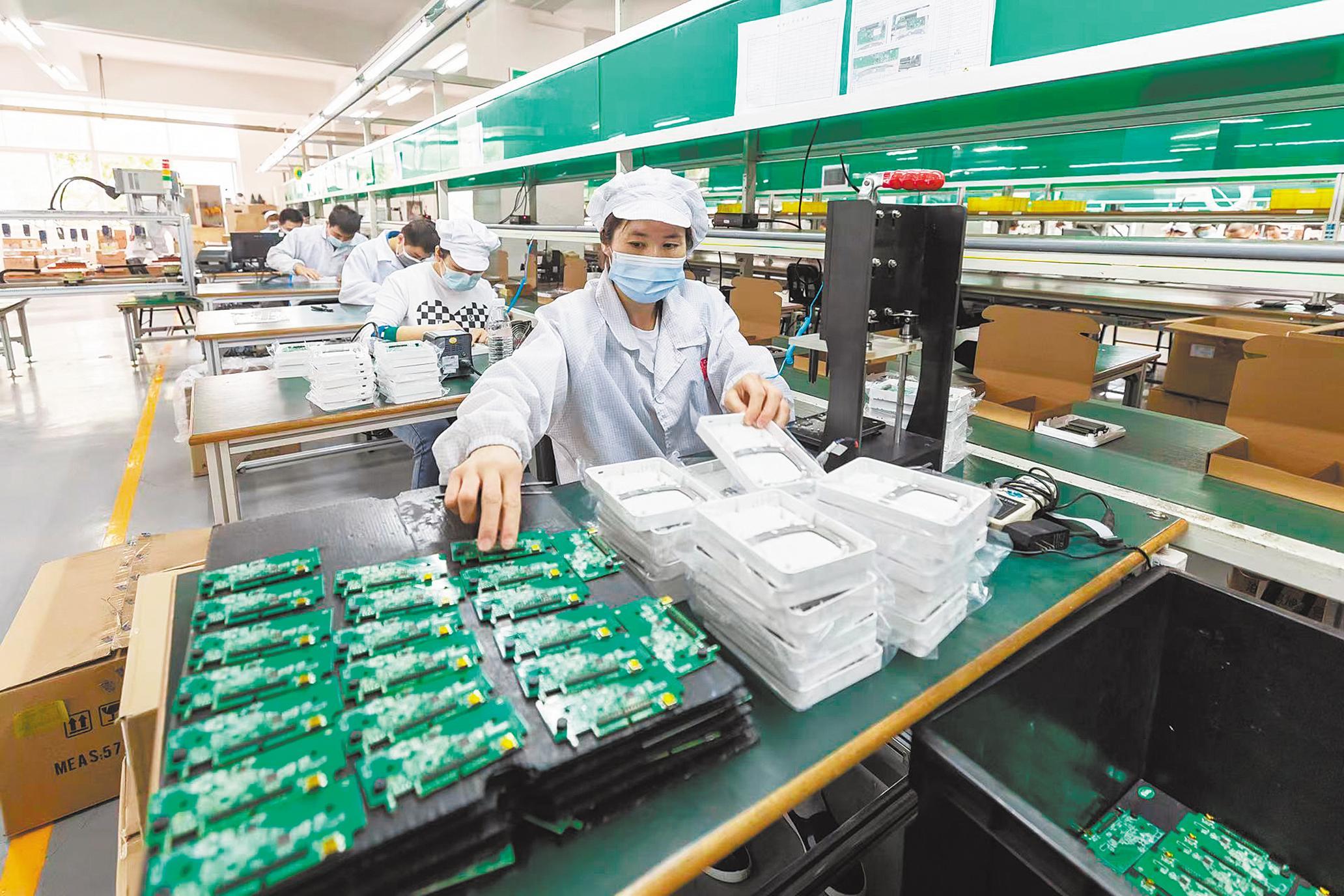 “组装车间能实现快速换线,除组装缝制设备伺服电控组件外,还能生产身份证阅读器具、智慧校园设备、智能测温系统、电动摩托车智能充电设备等产品。”付亮说。