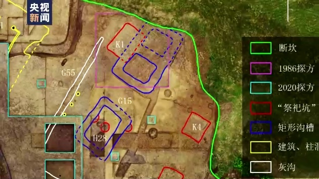 据介绍,目前在祭祀区内总计发现了8座长方形“祭祀坑”,这其中包括1986年发掘的1号和2号坑。另外,随着考古发掘的推进,又在祭祀区内发现了2座矩形沟槽和1座大型建筑等与祭祀活动有关的遗存。新披露的信息显示,结合地层关系、出土器物以及碳14测年结果,专家现在初步判断,新发现的3号、4号、7号和8号坑,年代为距今约3200年至3000年,大致相当于晚商殷墟四期,而5号和6号坑的年代相对稍晚。