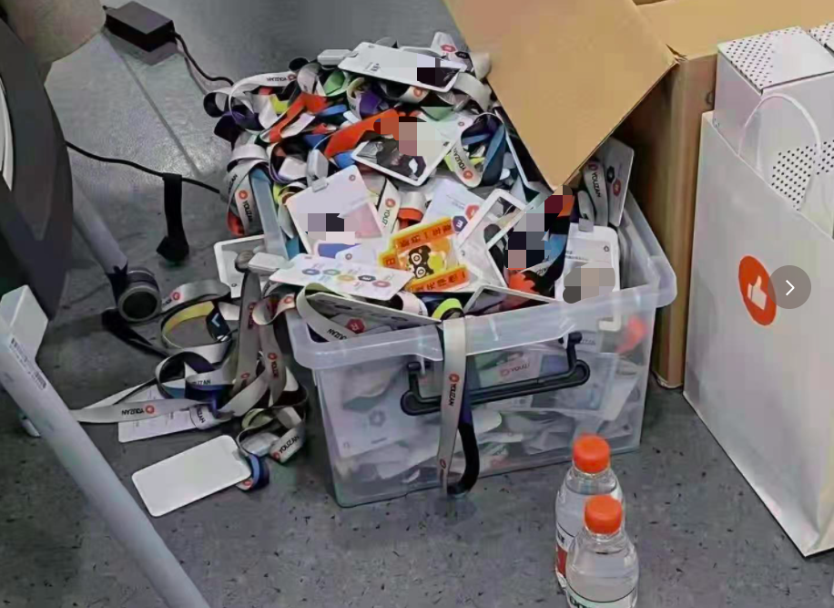 有网友晒出了有赞裁员后,办公桌上摆了一大箱工牌,据称是被裁员工留下的。