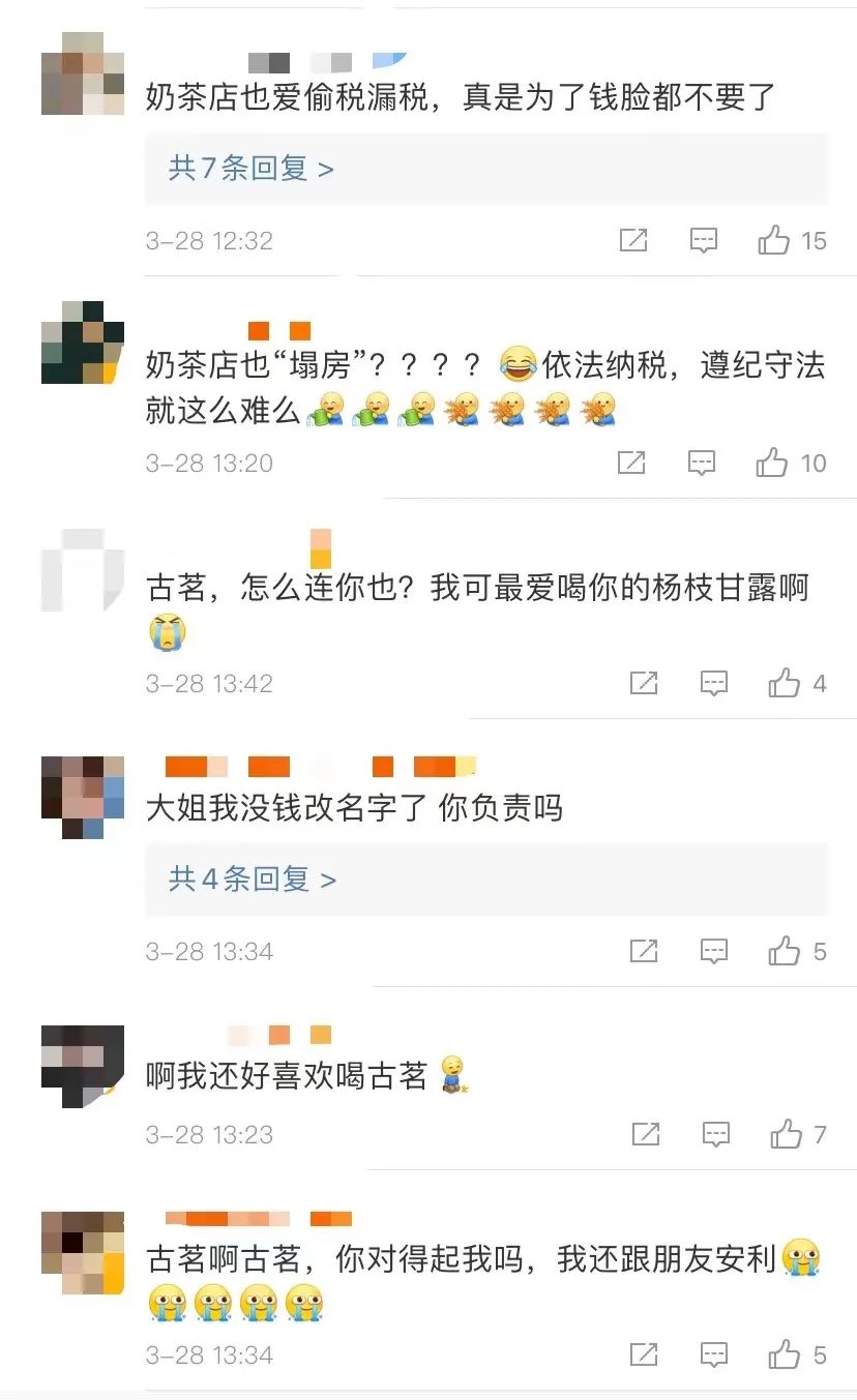 有网友表示,古茗价格贵活动也少,不能理解为何仍然偷税漏税,也有网友认为应该将其“封杀”,“不能为了钱不要脸”。
