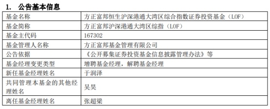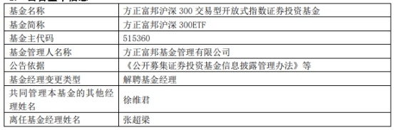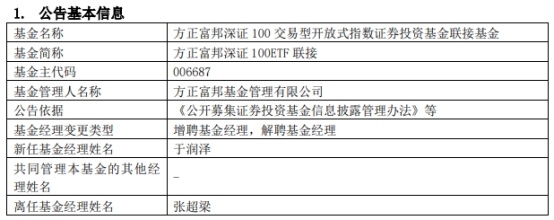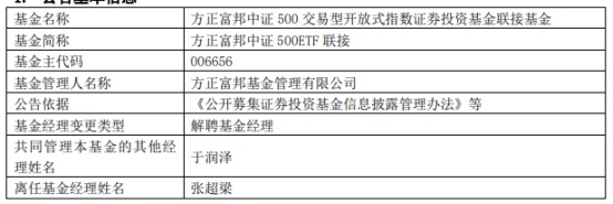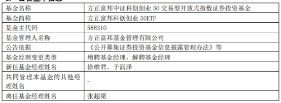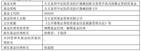 其中,方正富邦沪深港通大湾区综指(LOF)增聘基金经理于润泽,与吴昊共同管理该基金;方正富邦中证500ETF、方正富邦中证500ETF联接由原共同管理该基金的于润泽独立管理;方正富邦深证100ETF联接增聘基金经理于润泽;方正富邦沪深300ETF由原共同管理该基金的徐维君独立管理;方正富邦中证医药及医疗器械创新ETF、方正富邦科创创业50ETF增聘基金经理徐维君、于润泽。