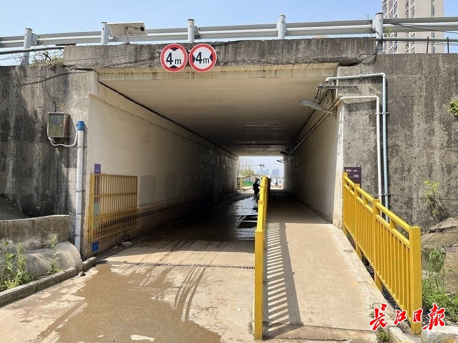 28日中午,长江日报记者来到爱家名校华城小区。沿着黄家湖六街走过一个很陡的下坡后,来到了这个下穿高速的涵洞,涵洞两侧道路都设置了限宽石墩不能走机动车,居民接送学生只能靠步行或骑车。记者注意到,涵洞与爱家名校华城小区之间有较大的落差,一根排水管设置在涵洞口,在下雨天,周边的雨水都从这个排水管进入涵洞,导致涵洞积水难退。