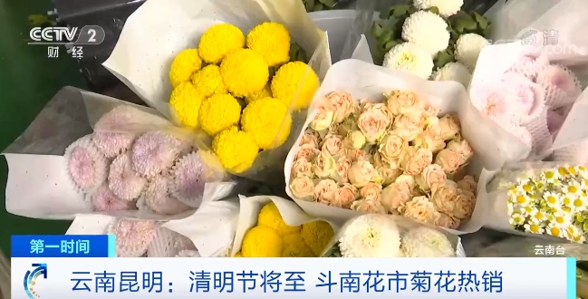 再过几天就是清明节了。在云南昆明的斗南花市,一些用于清明祭祀的鲜花已经开始热销。