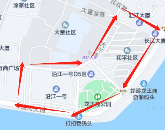 龙王庙公园、沿江一号、沿江大道、沿河大道、大兴路
