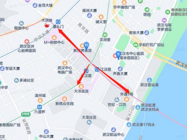 江汉路步行街、江汉路地铁站、水塔美食街、大洋百货商圈